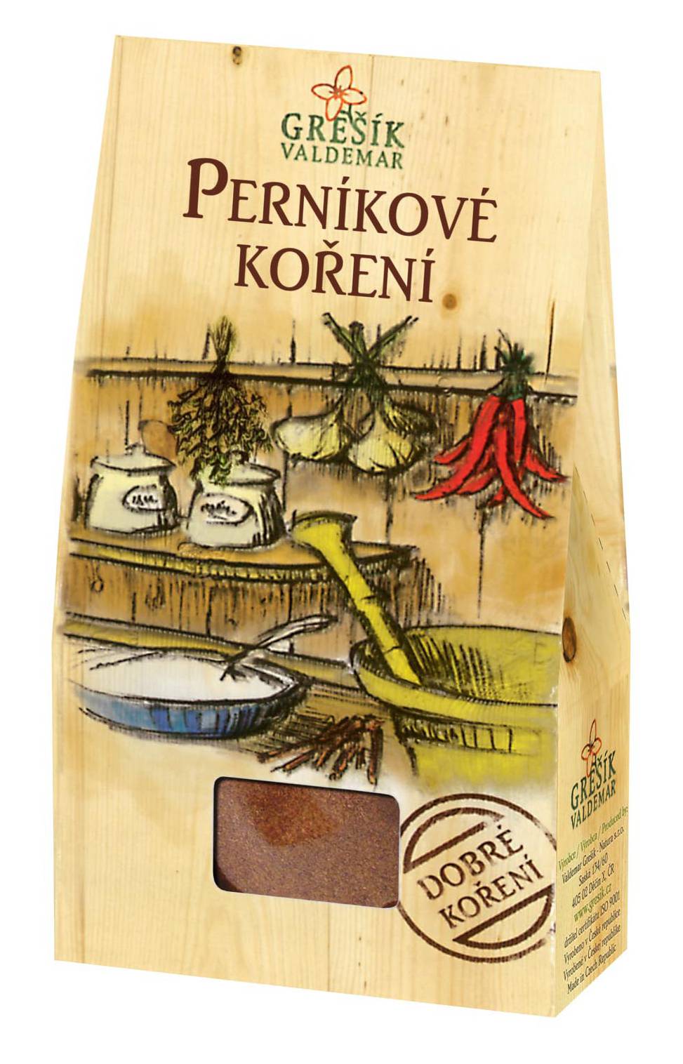 Složení: skořice, koriandr, hřebíček, badyán, zázvor, muškátový ořech, nové koření